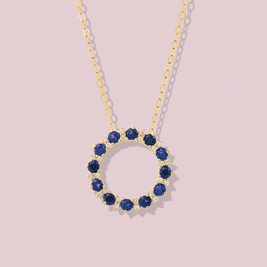 14k Solid Gold Birthstone Circle Necklace