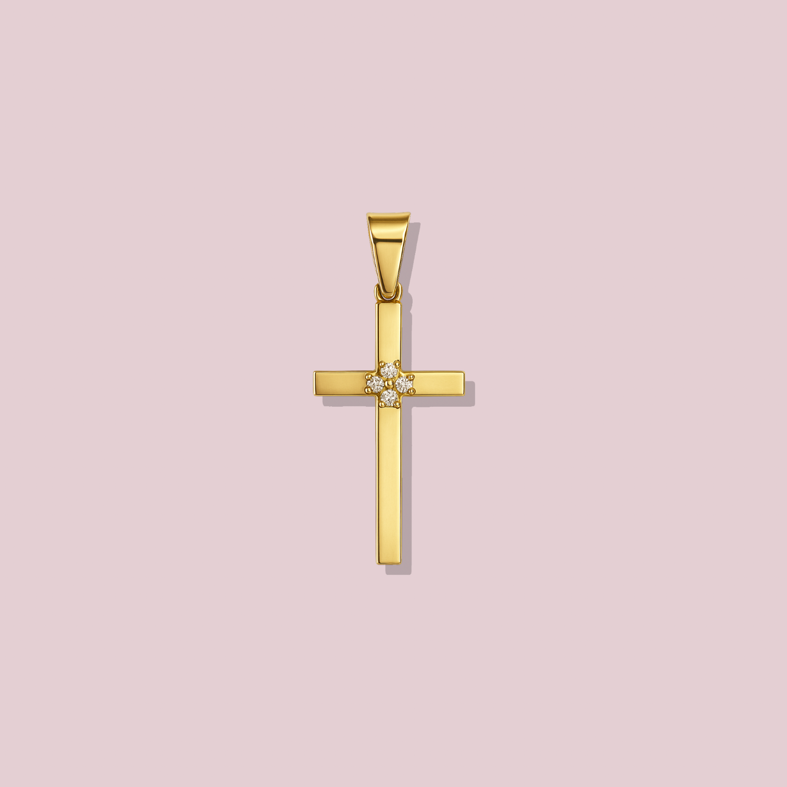14K Solid Gold Cross Pendant with Cz