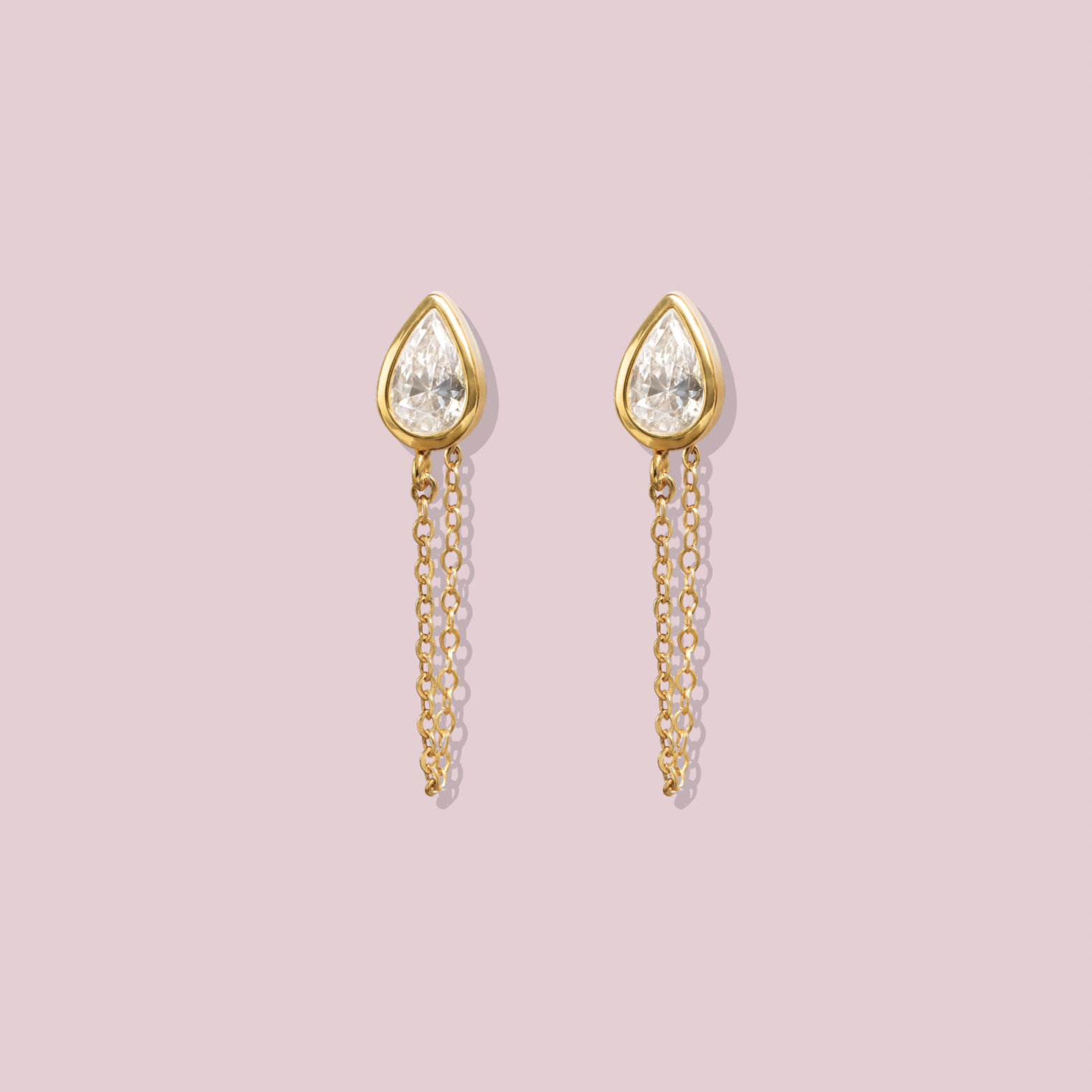 14K Solid Gold CZ Pear Earring with Chain.
