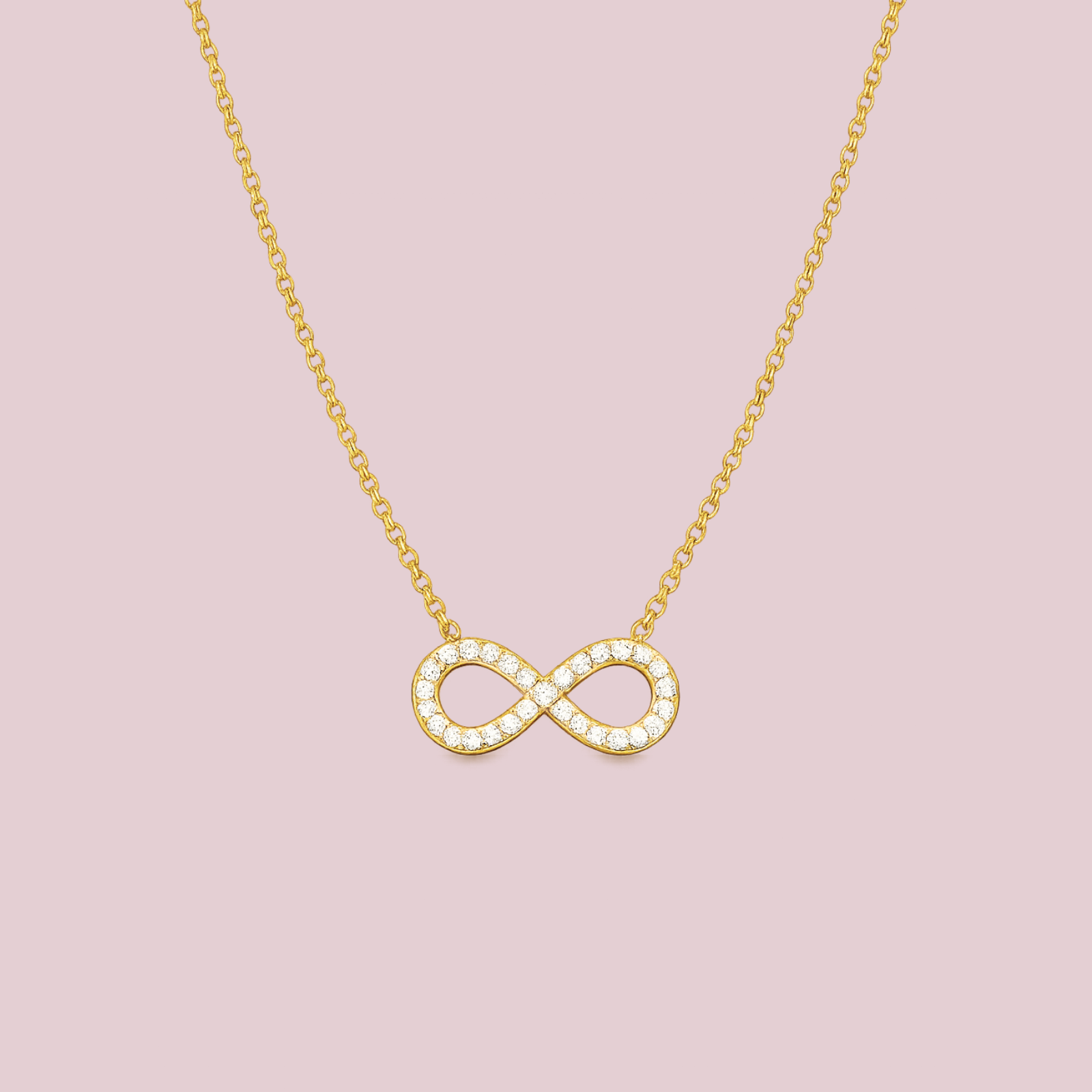 A delicate and meaningful infinity necklace made in real 14K solid gold, perfect for everyday wear. The timeless infinity charm adds a touch of sparkle and symbolizes forever love. The adjustable chain makes it easy to wear alone or layer with your favorite pieces.